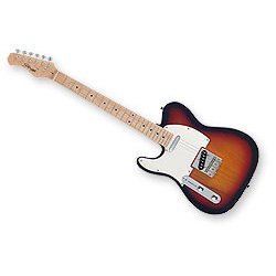 Guitare Electrique. Forme "Telecaster". Gaucher.Manche Erable Vissé. Touche Erable. 21 Cases.Corps Aulne. 2 micros.Sunburst.