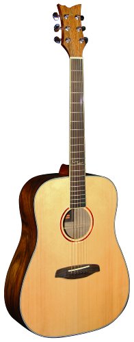 Guitare acoustique de la gamme Coral pour gaucher; Table en épicéa massif; Coloris : bois naturel laqué et satiné; Pickguard réutilisable; Contenu de la